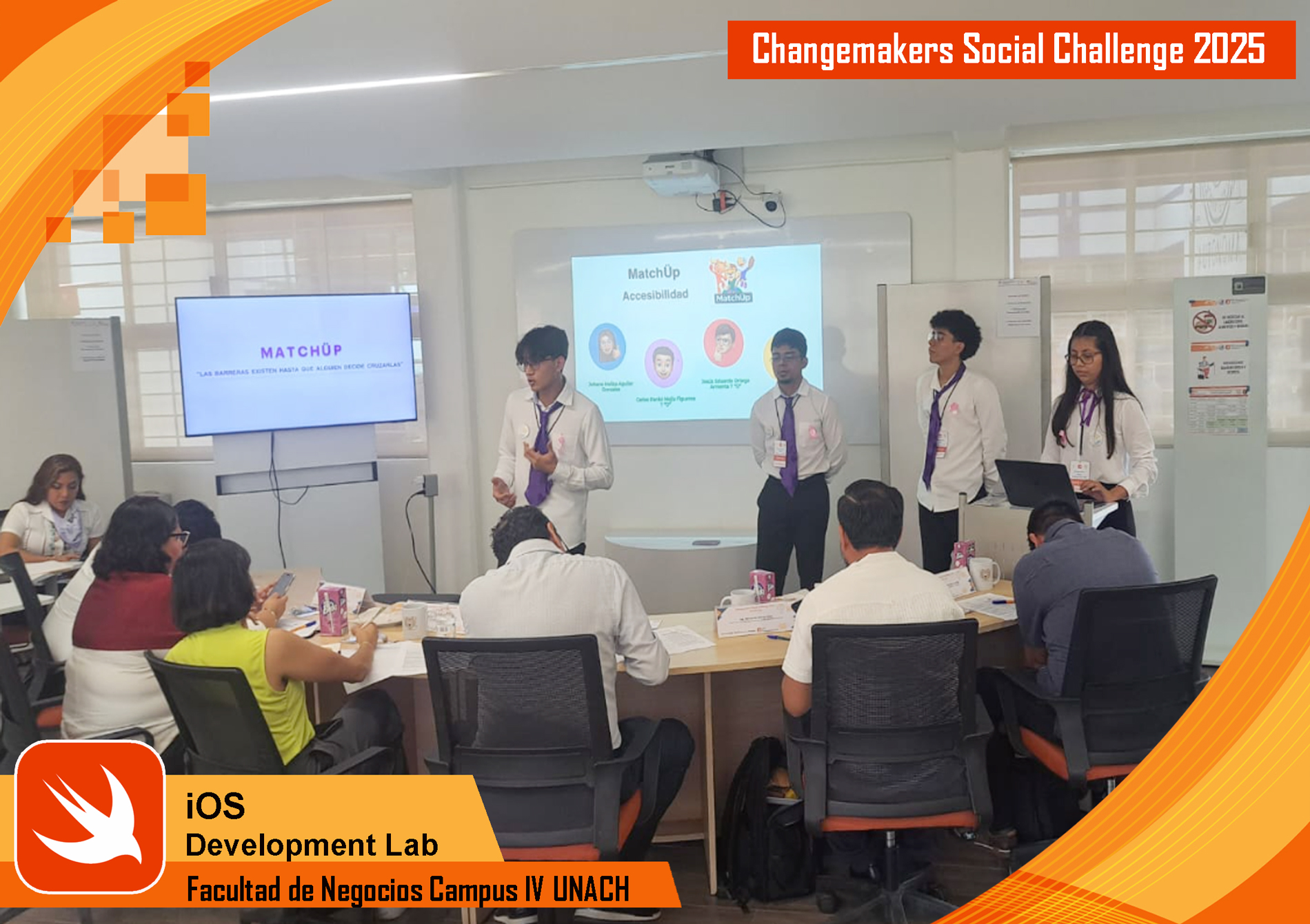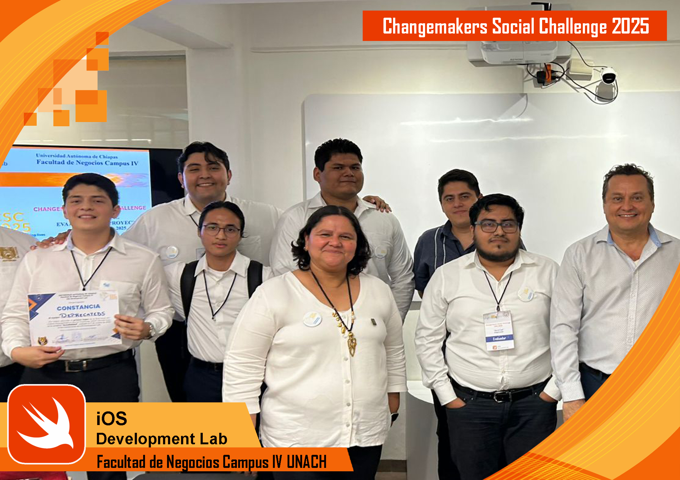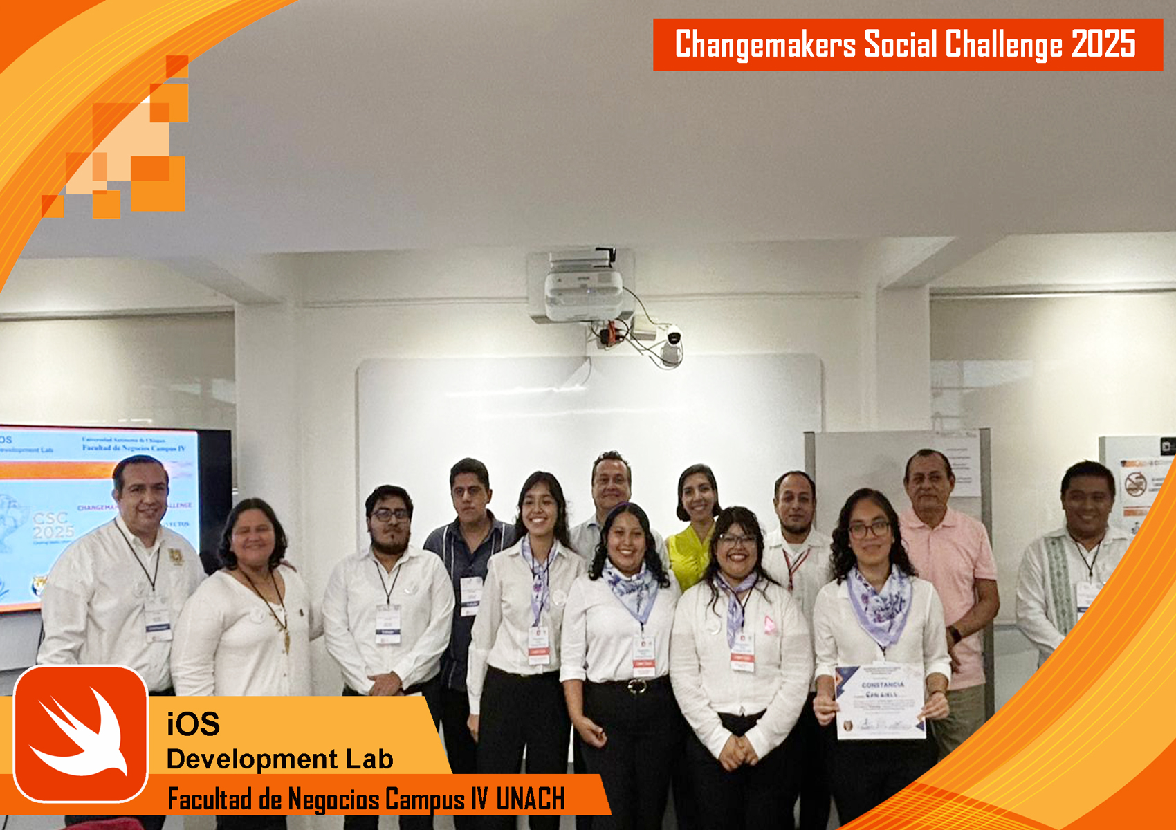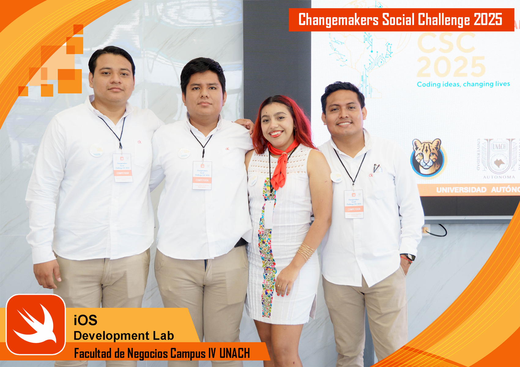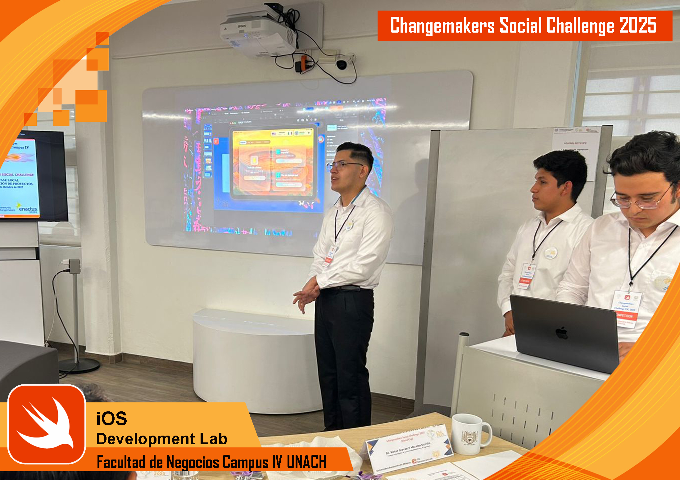 El viernes 17 de octubre de 2025 se realizó la fase local del evento Changemakers Social Challenge (CSC) 2025, una competencia de alcance nacional organizada por la Fundación Enactus México. Este evento brinda a jóvenes universitarios la oportunidad de demostrar su talento, conocimientos y creatividad mediante el desarrollo de aplicaciones iOS con impacto social, además de integrarse a la comunidad Changemakers, comprometida con transformar el futuro a través de ideas innovadoras y poderosas. En esta edición, el tema central fue World Cup, y contempló tres categorías de participación: 1. FemCoding (Mujeres STEM), 2. Inteligencia Artificial y 3. Accesibilidad (Apps inclusivas).