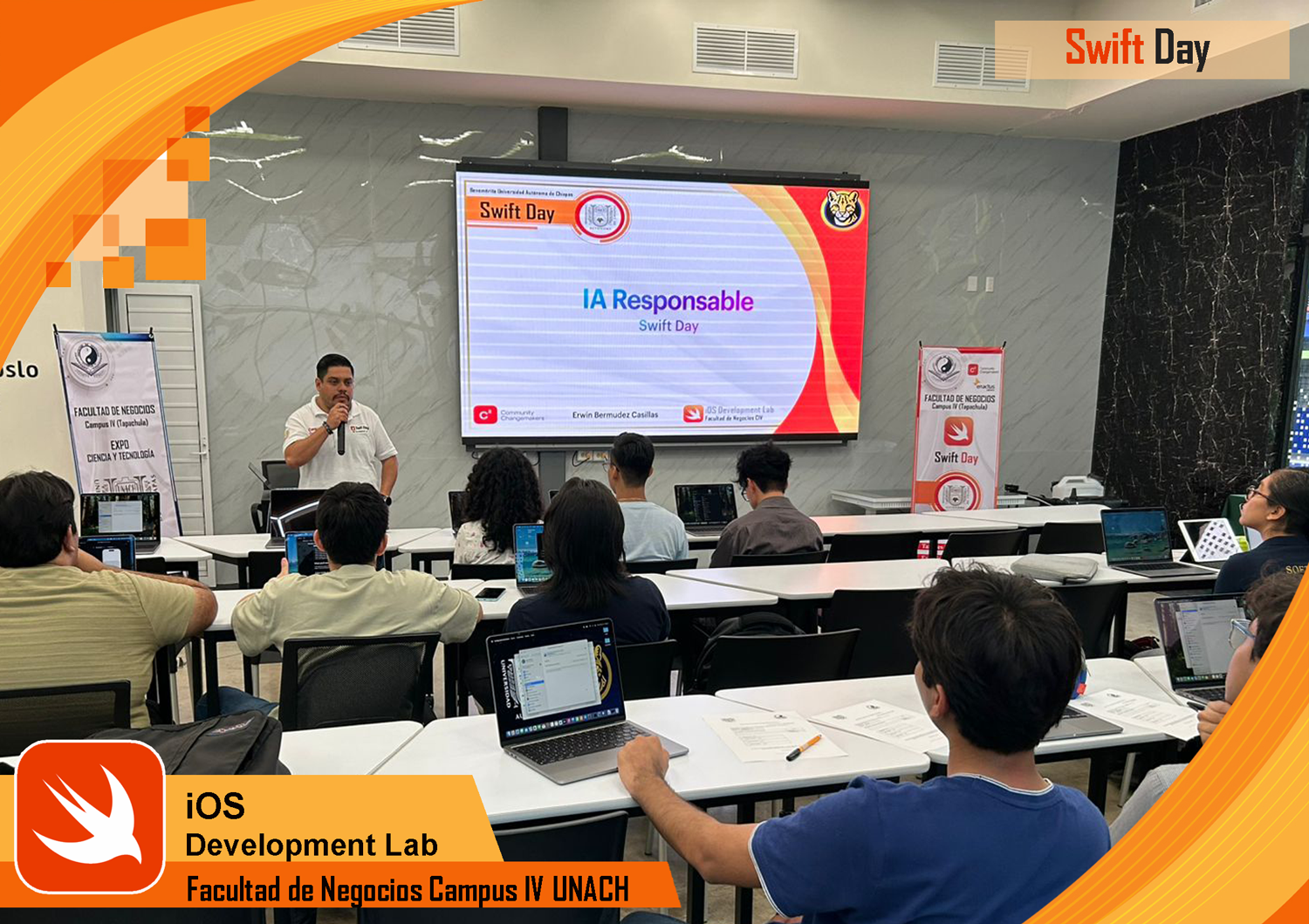 El día 28 de octubre de 2025, el iOS Development Lab de la Facultad de Negocios Campus IV de la UNACH, fue sede de la primera edición del evento Swift Day 2025, una jornada dedicada al aprendizaje y la experimentación en torno al desarrollo de aplicaciones en el ecosistema iOS, realizada con el apoyo de Community Changemakers y la Fundación Enactus México.